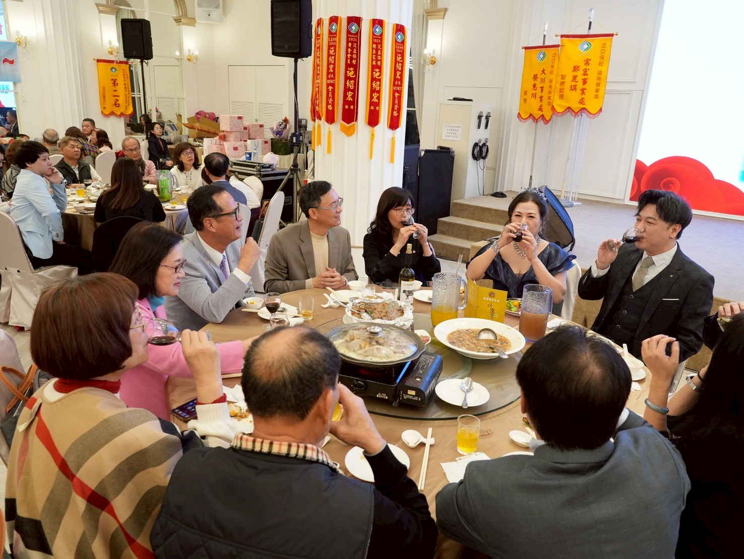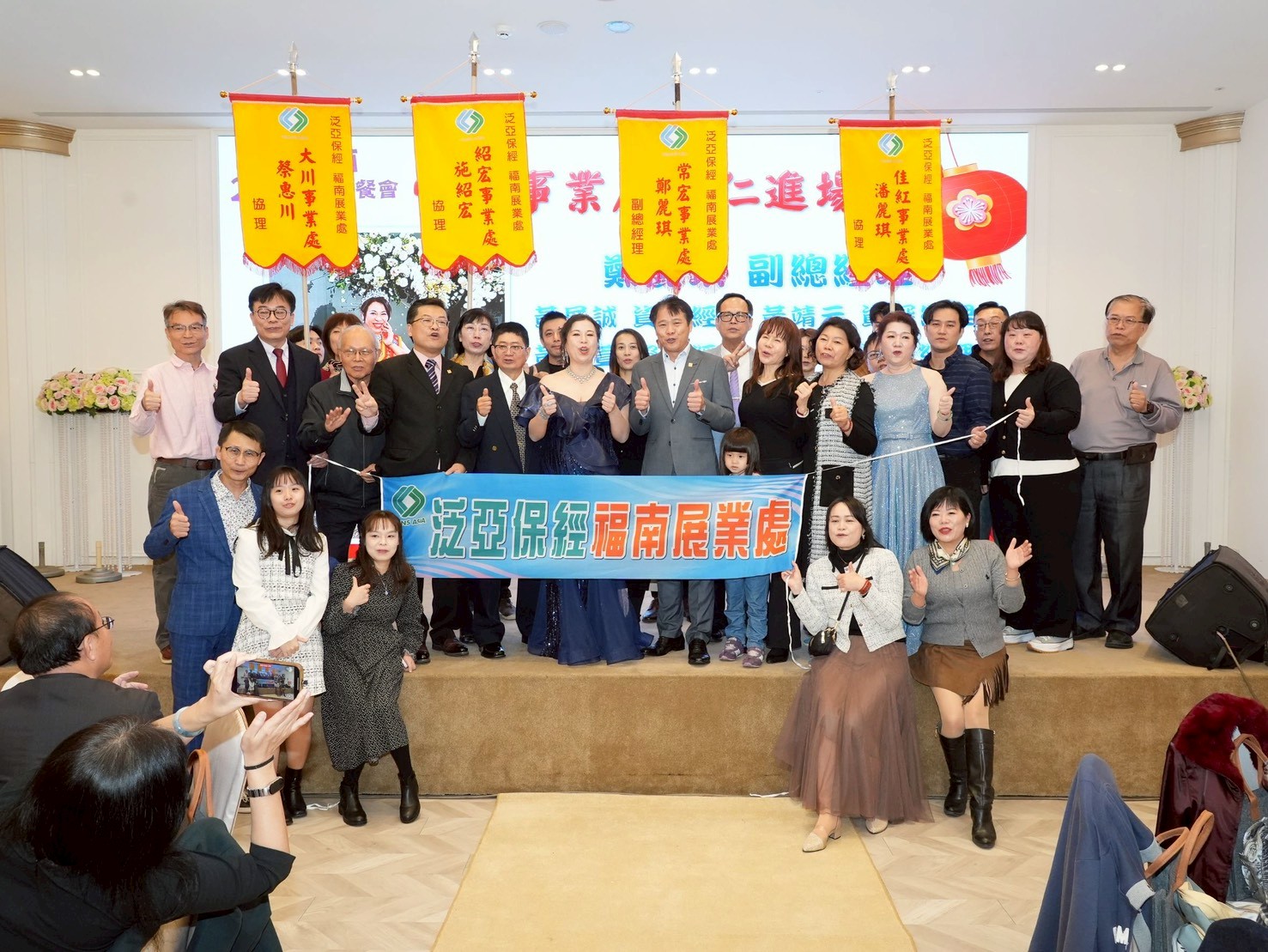 晚會當天同步舉行績優主管表揚與晉升儀式,包含施紹宏協理、潘麗琪協理、蔡惠川協理、涂黃鴻妹區經理等多位優秀主管,成為全場矚目的焦點,也再次印證👉 「保險事業有泛亞,人生過得更優雅」的企業精神! ✨